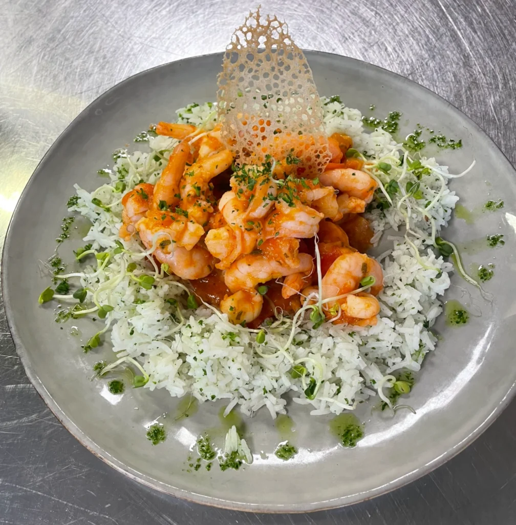 SAUCE TOMATE FRAIS,AIL, GINGEMBRE ET HERBES FRAIS ACCOMPAGNEMENTS: RIZ BASMATI